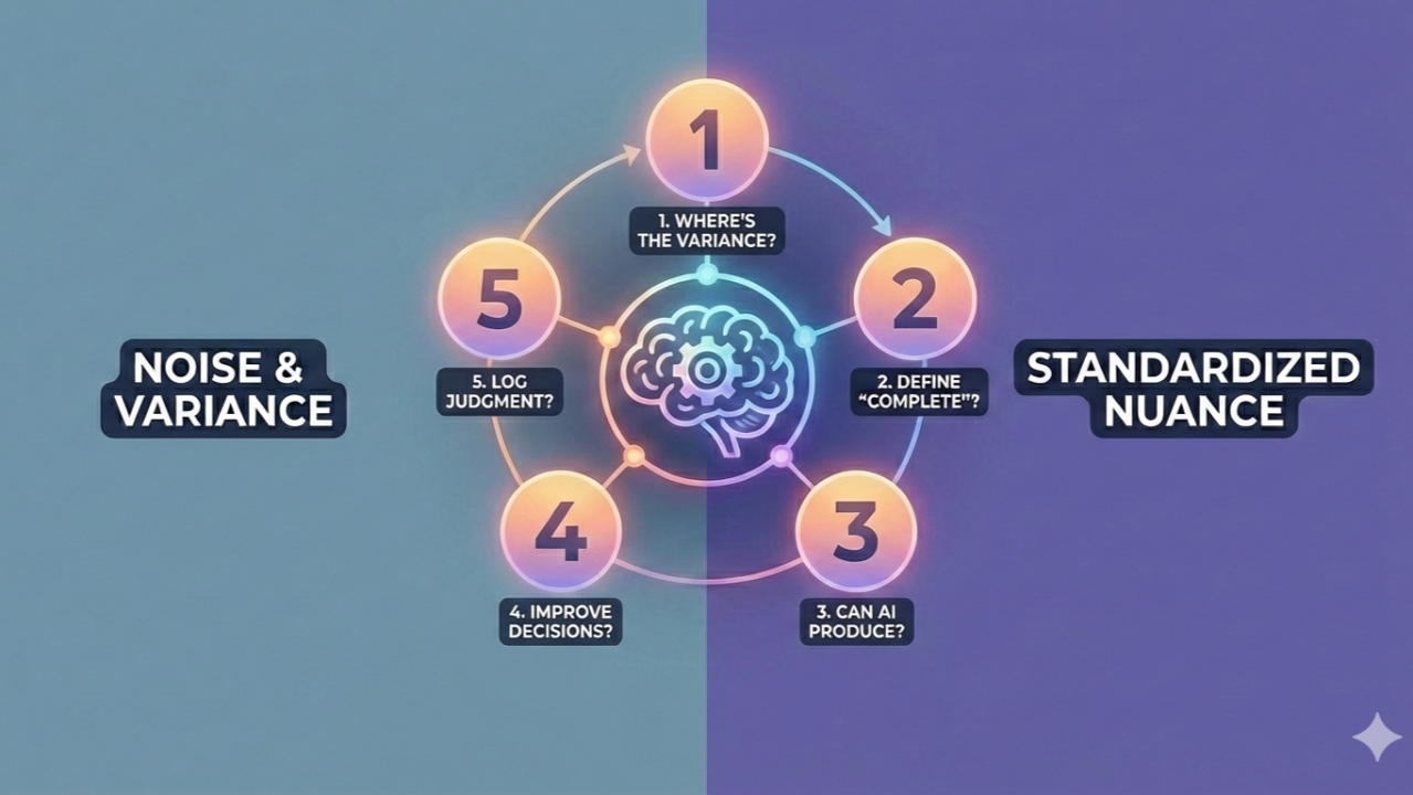 Not “where can we bolt AI onto what we already do,” but: where is human variance degrading data quality, slowing decisions, and creating avoidable rework—and how can AI standardize that without stripping away strategic judgment?